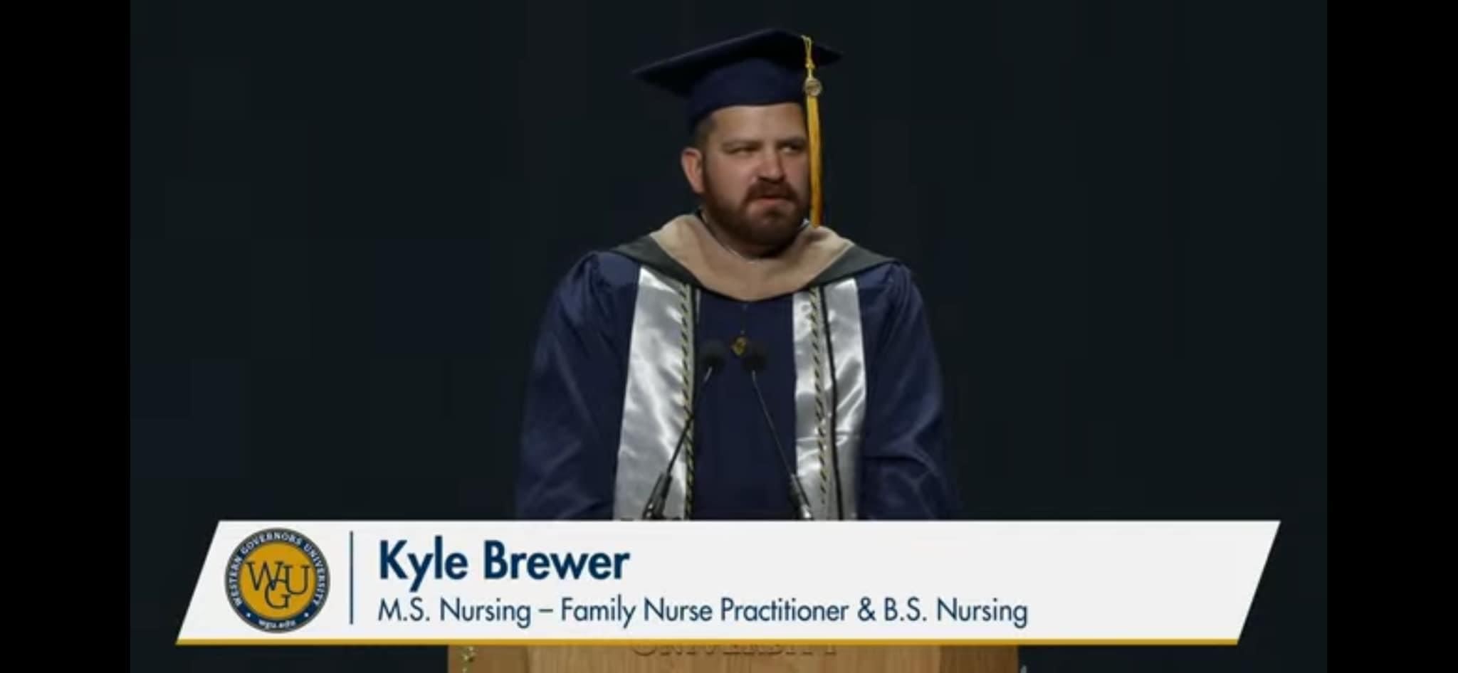 Congratulations to Kyle Brewer, a Family Nurse Practitioner at the MDH Convenience Clinic who recently received his degree from Western Governors University! Brewer was officially awarded his diploma on September 21 at a ceremony in Orlando, Florida. But receiving his degree wasn’t Brewer’s only accomplishment that day — he was also chosen to speak for the Health Division graduates.