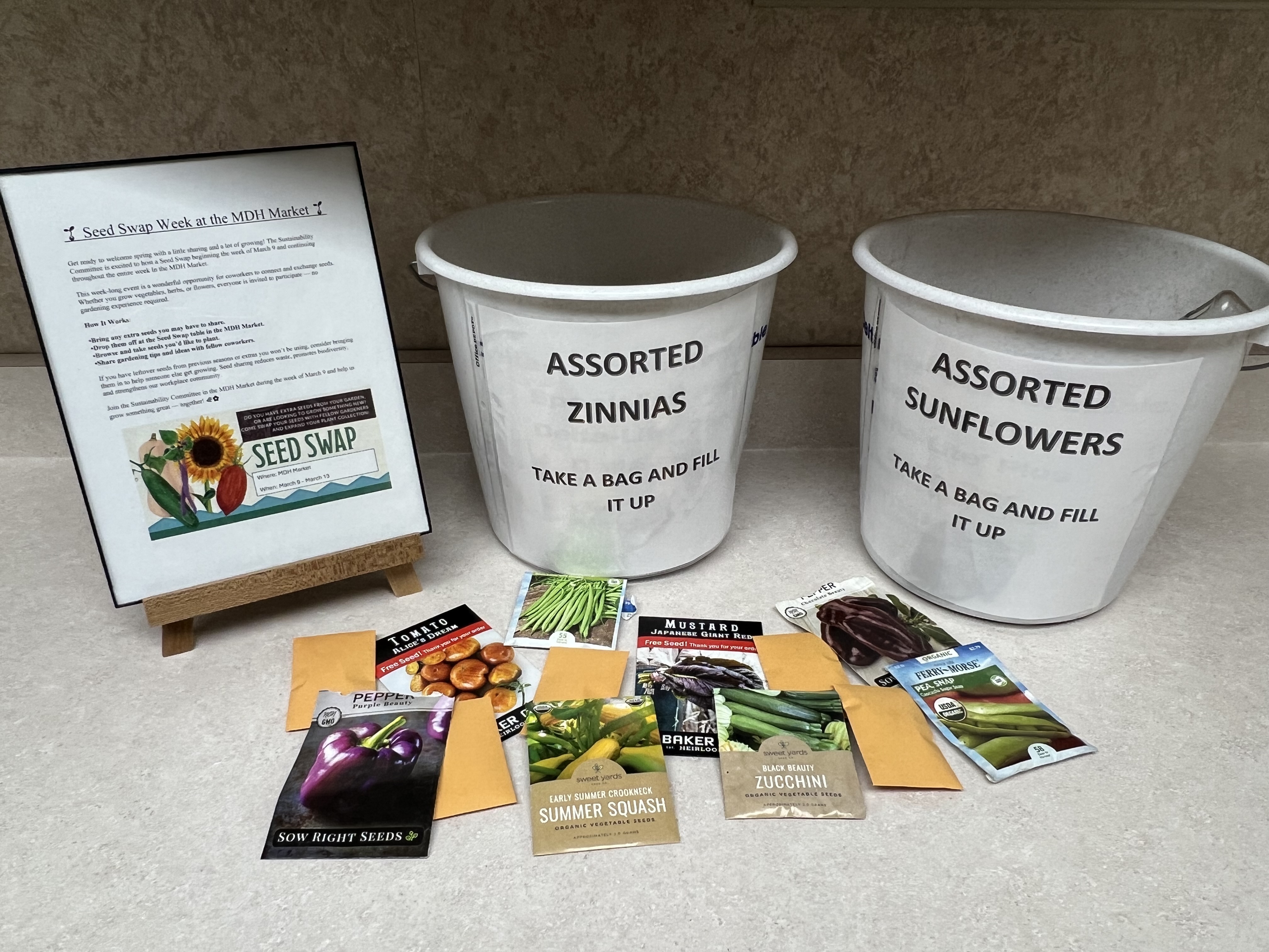 The Sustainability Group, made up of MDH employees from different departments in the hospital, sponsored a week-long Seed Swap program (March 9-13). Coworkers could bring in leftover seeds, leave them inside the MDH Market, and take seeds that others have donated to use in their gardens.